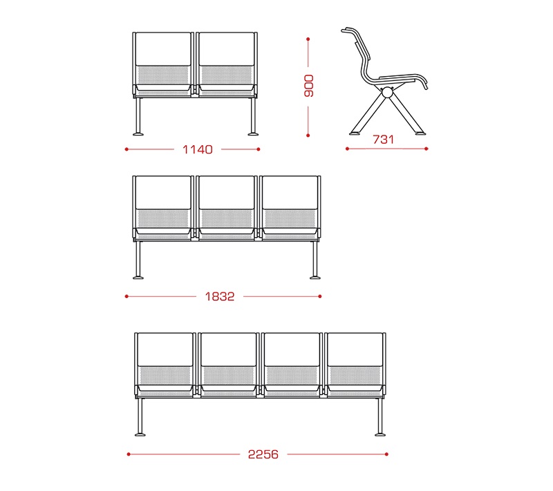 Главным приоритетом серии "Айрон" является легкий, но прочный каркас и продуманная форма спинки, которая поддерживает осанку в естественном положении, минимизируя усталость даже при длительном ожидании. Дополнительно конструкция оснащена регулируемыми по высоте подпятниками, позволяющими адаптировать ее к неровным поверхностям.