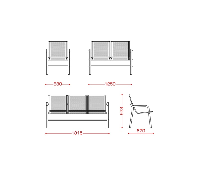 Многоместная секция "Avion" без мягкого элемента предназначена для эксплуатации в зонах ожидания общественных мест с большой проходимостью: вокзалах, аэропортах, холлах административных зданий и пр.