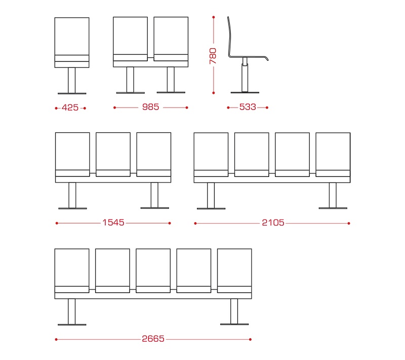 Многоместная секция "Футур" прекрасно впишется в холл или рекреацию учебного или медицинского учреждения.