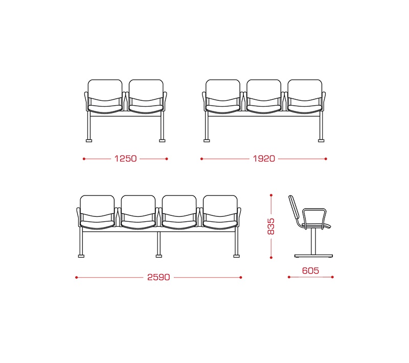 Траст (3-х местн.) мод.СМ 82/20-03 металлический каркас – труба 50х25, труба пл/овальная 30х15; 6 подлокотников ISO, 20000,00 руб.