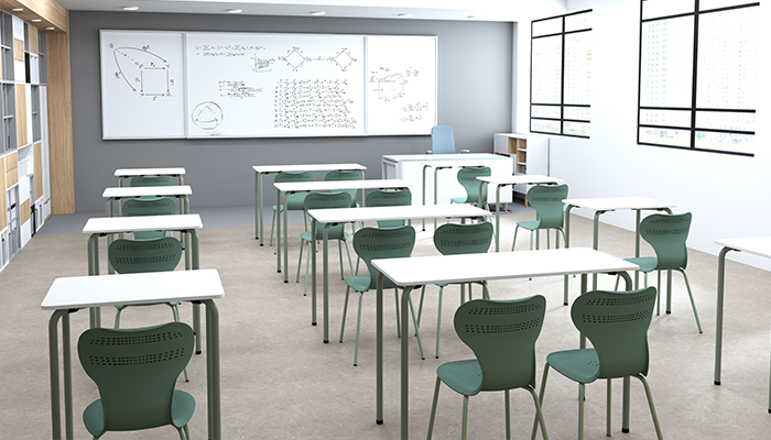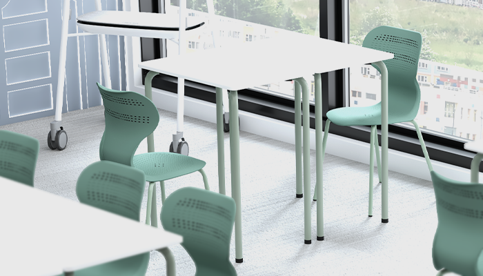 Модульная конструкция столов даёт возможность изменять расположение и конфигурацию, создавая оптимальные условия для совместного или индивидуального обучения.