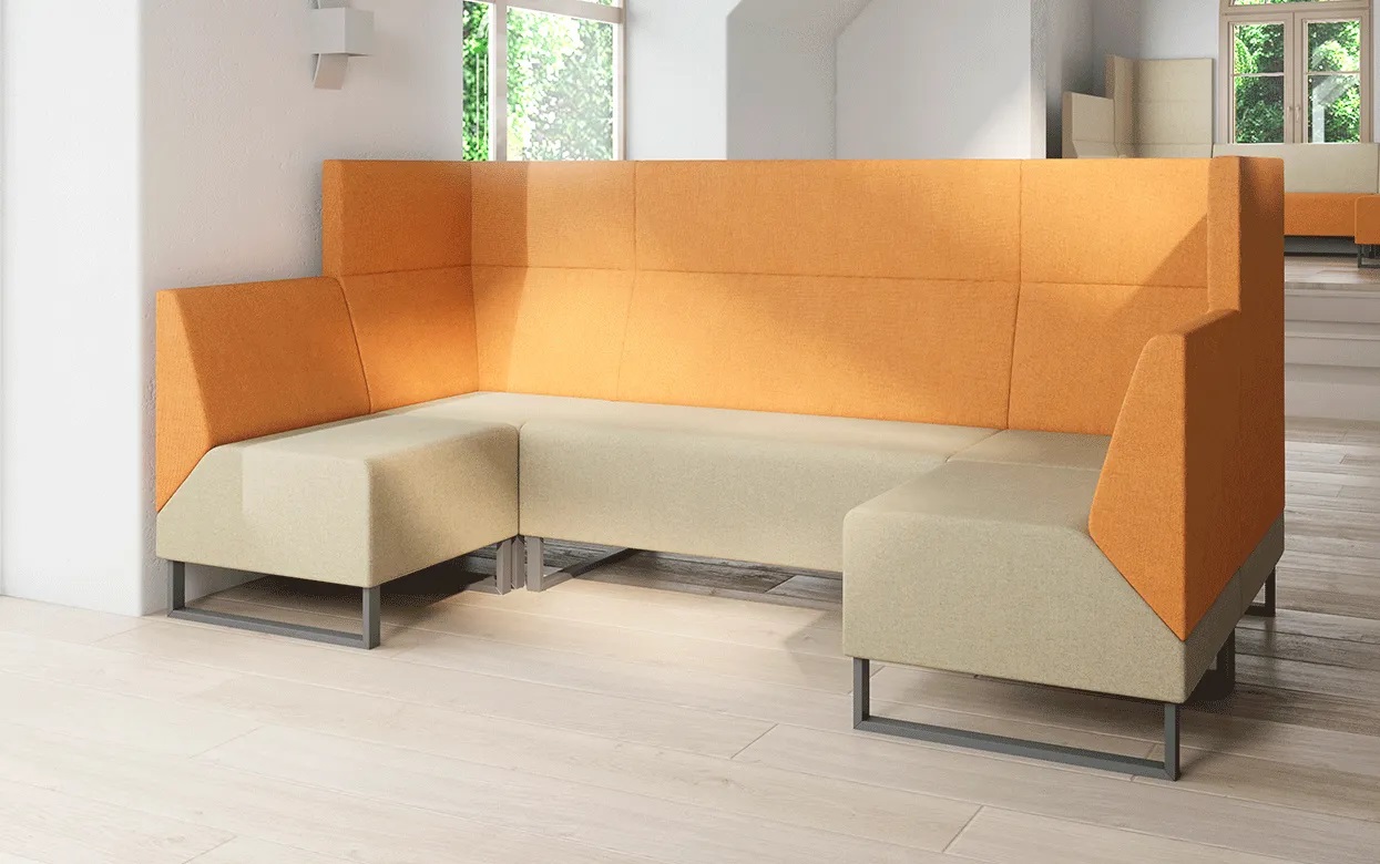 Три уровня высоты спинки позволяют создавать различные компоновки закрытого, открытого и полузакрытого типов, адаптируя их к большим и малым общественным помещениям.