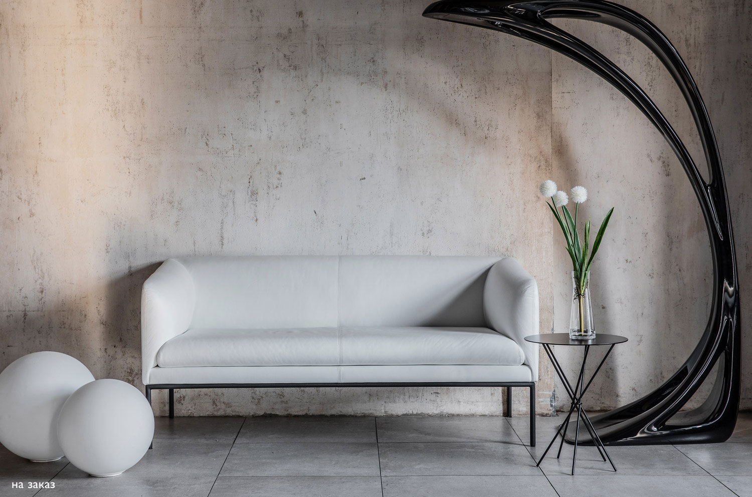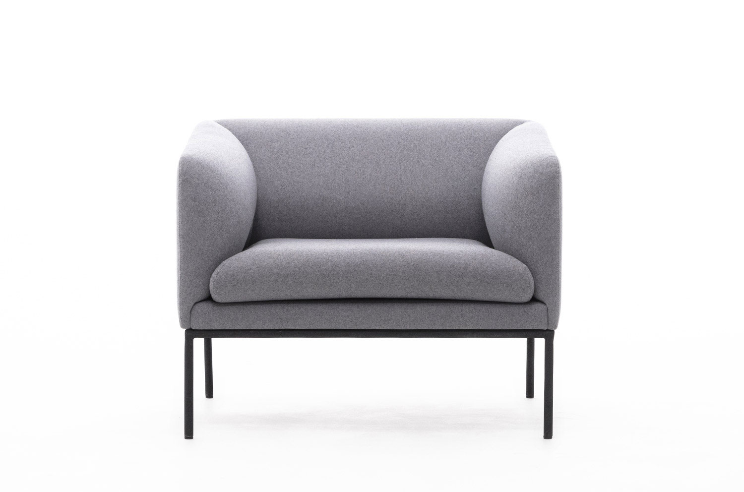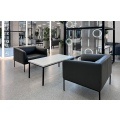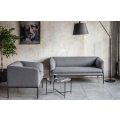 Коллекция "Liro" в складском ассортименте представлена двухместным диваном и креслом, выполненными в шерстяной ткани или коже серого цвета в сочетании с черными стальными опорами.