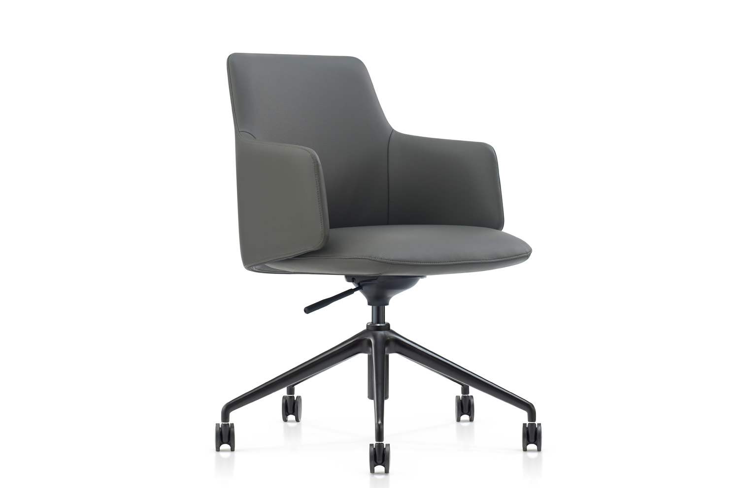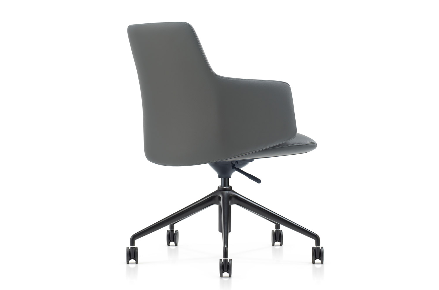Кресло со структурным силуэтом и черной металлической 5-тилучевой опорой станет уместным везде, где ценят простые и четкие решения.