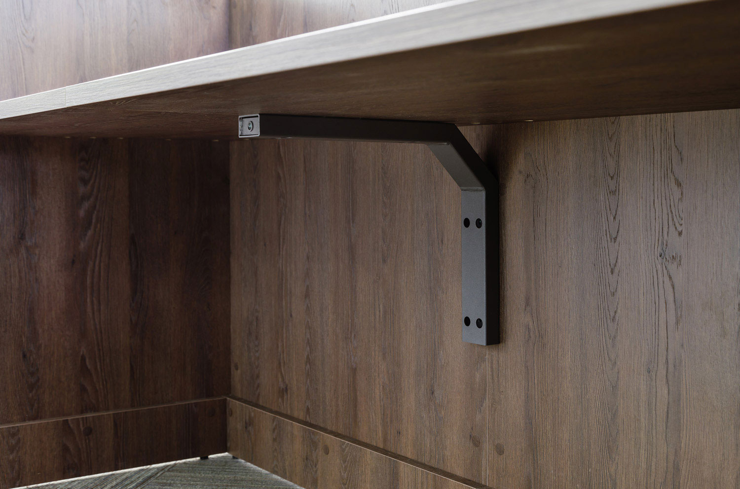 Модули стойки имеют цоколь, изготовленный из МДФ и облицованный прочным пластиком.