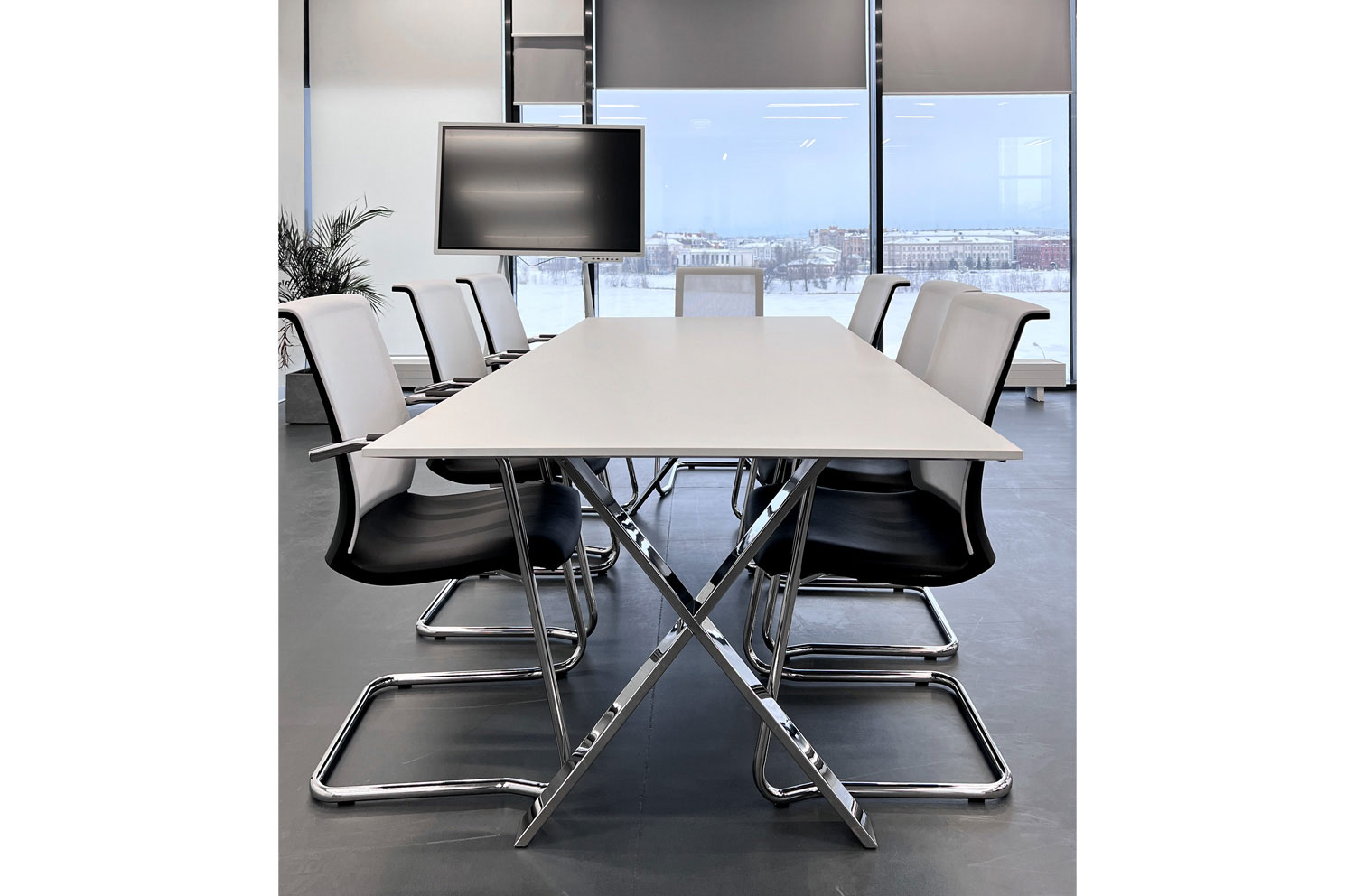 Стол для переговоров 240х110 мм на Х-образных хромированных опорах.