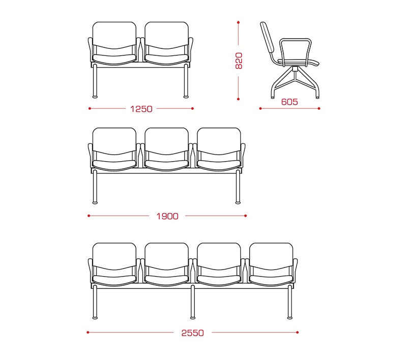 Матис (4-х местн.) мод.СМ 85/1-04 с дополнительной стойкой металлический каркас – труба 60х60, Ø30, труба плоско-овальная 30х15, 8 подлокотников ISO, 35150,00 РУБ.