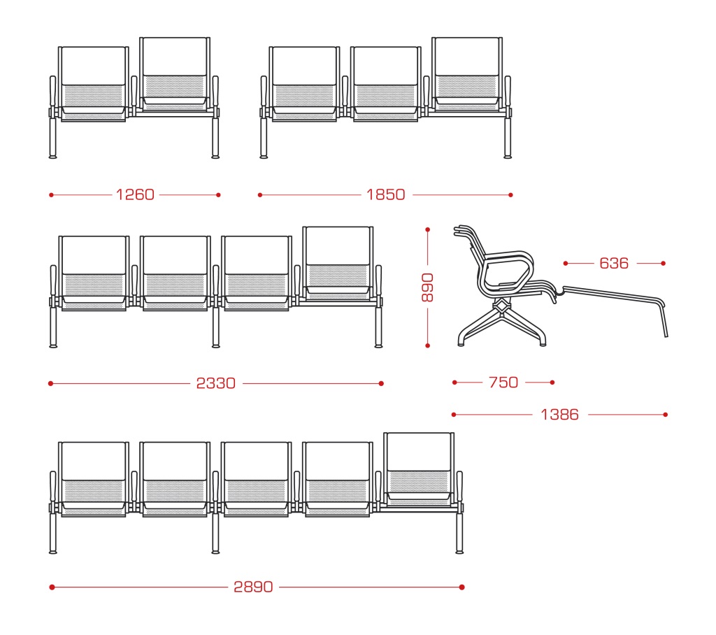 Многоместная секция "Вояж" с местом ММГН предназначена для эксплуатации в зонах ожидания общественных мест с большой проходимостью: вокзалах, аэропортах, холлах административных зданий и пр.