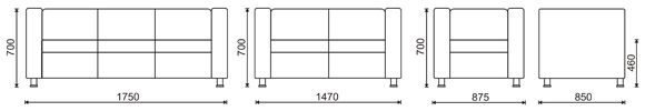 Указана оптовая стоимость за Цезарь (3-х местный) 1750х850х700 мод. Д7-03 при единовременной закупке продукции в количестве от 100 штук в базовом исполнении - материалы обивки 1 кат.*