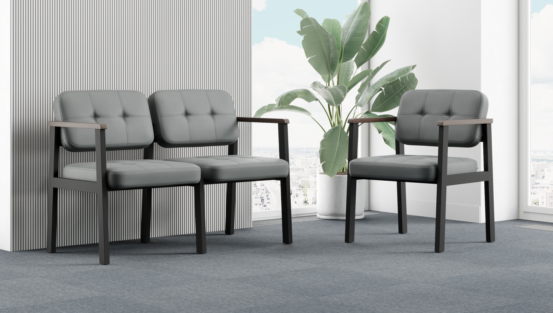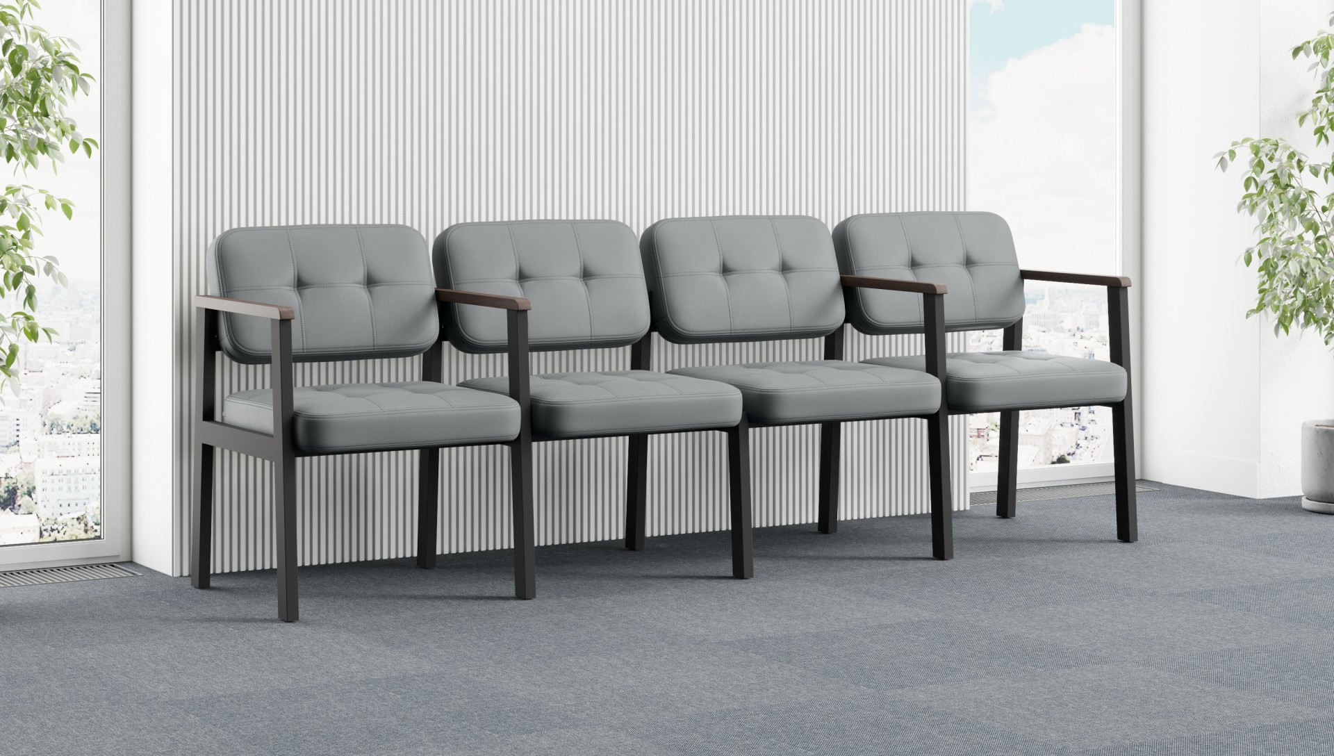 Указана оптовая цена за Секция трехместная с 4-мя подлокотниками ЧСТ-3-2ОП 1750х620х820 при единовременной закупке продукции в количестве от 100 штук в базовом исполнении - материалы обивки 1 кат.*