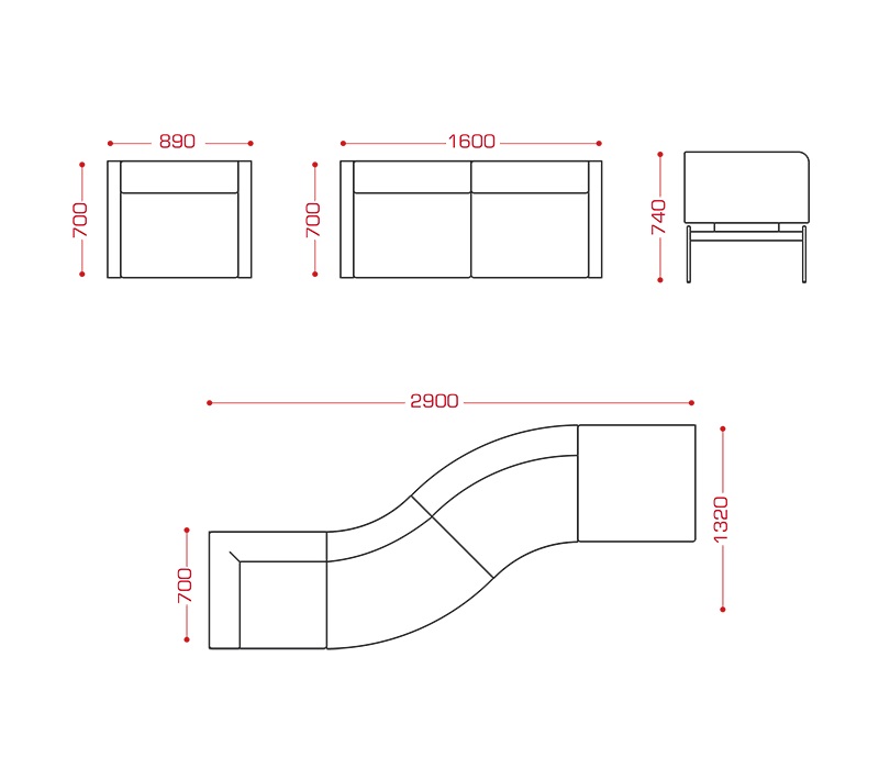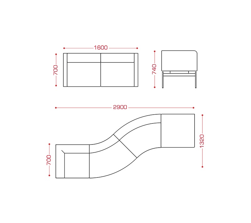 Flex диван 4-х местный, 2800х1400х740, Д24-трапеция со стойкой левая + Д24-трапеция со стойкой правая + Д24-трапеция-2шт. + Д24-крепежный узел-3 шт. + Д24-Е-4 шт., металлический каркас - труба Ф16 мм, 50*25 мм, лист 8 мм, 106900,00 руб.