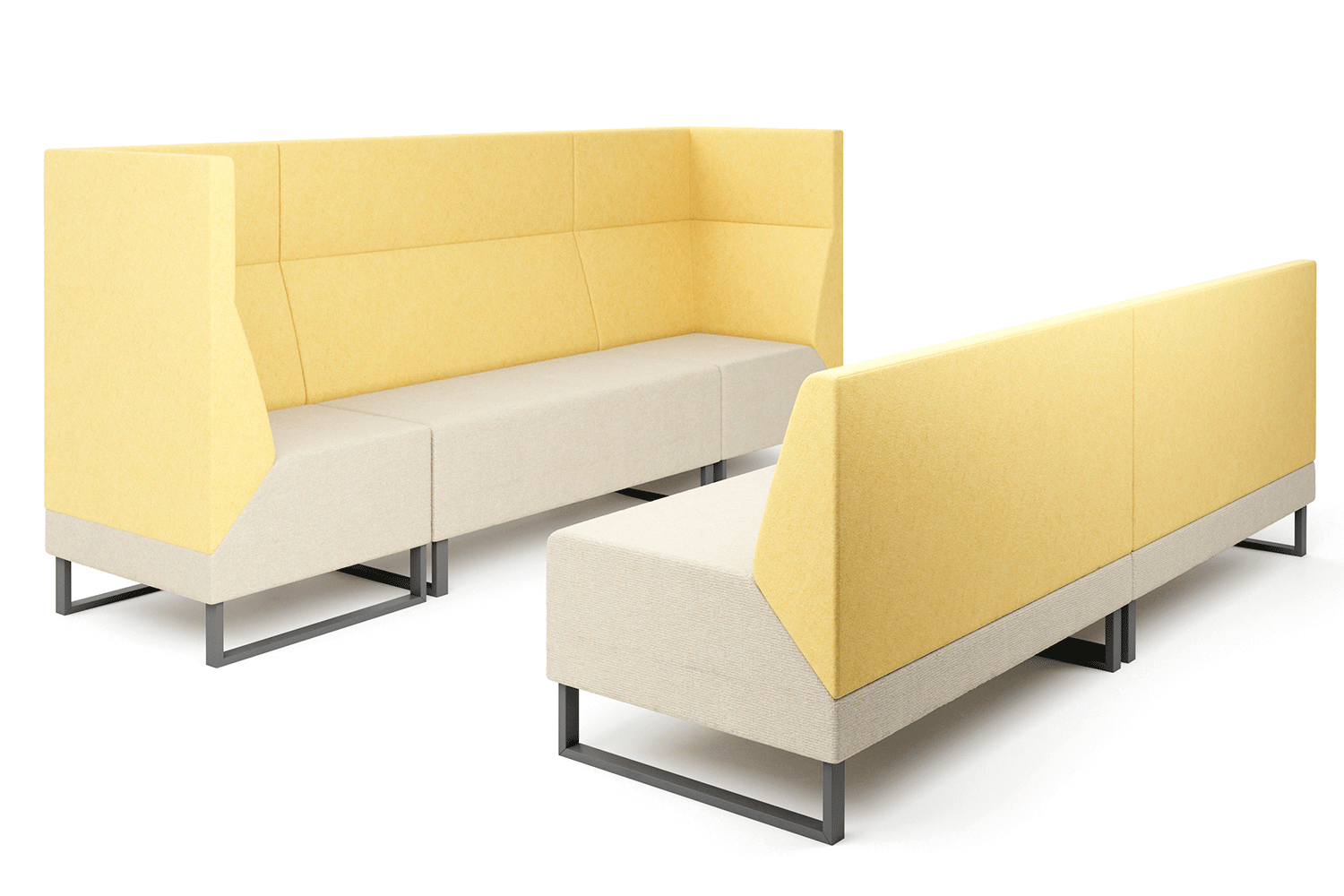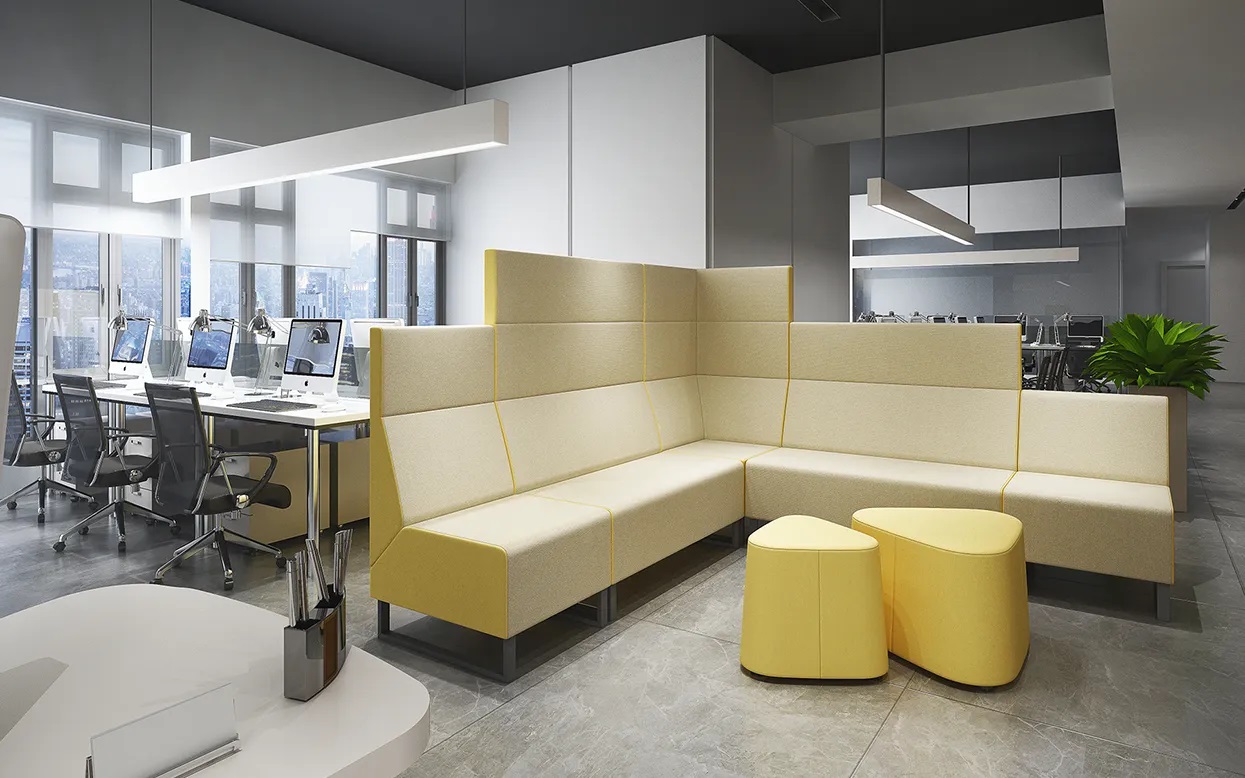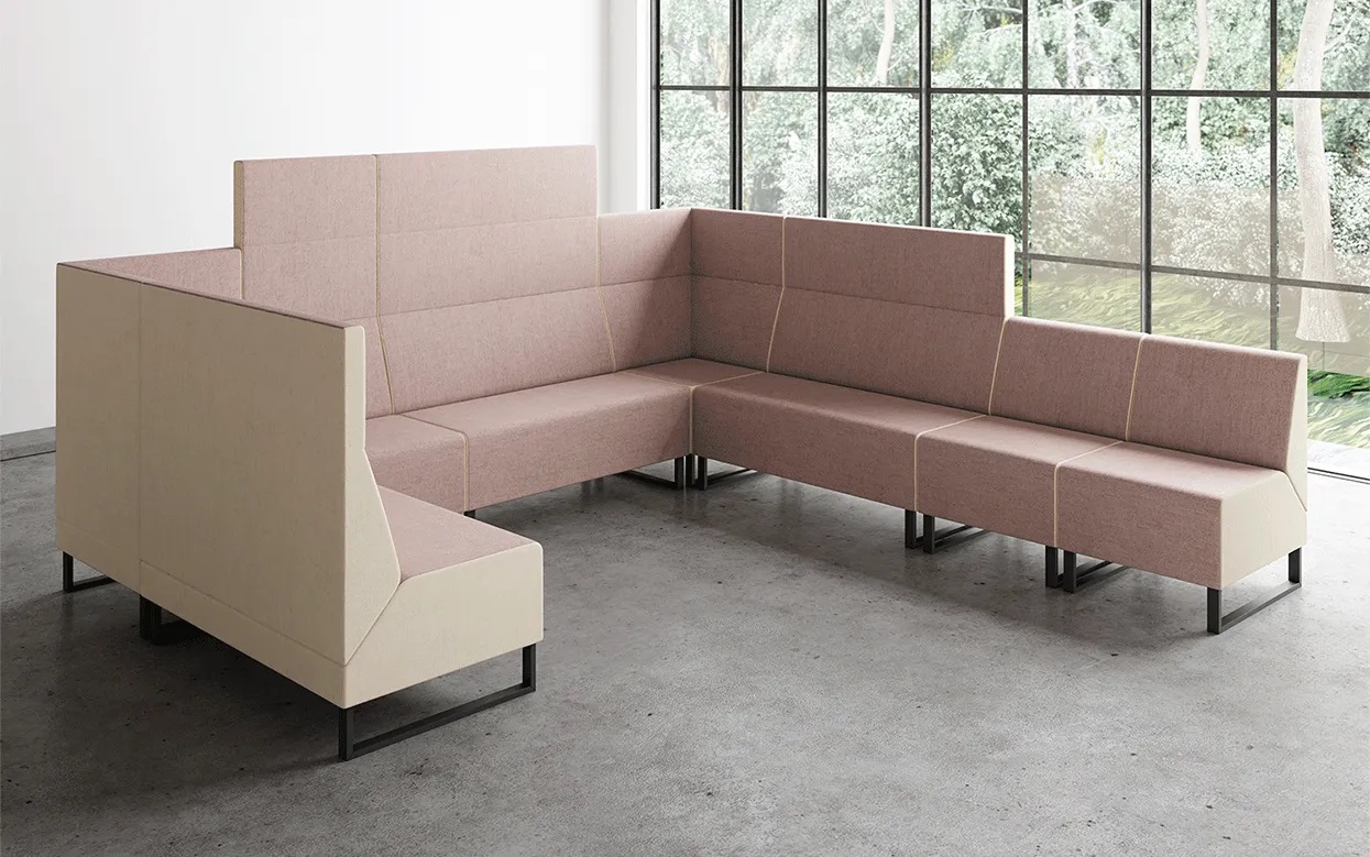 Три уровня высоты спинки позволяют создавать различные компоновки закрытого, открытого и полузакрытого типов, адаптируя их к большим и малым общественным помещениям.