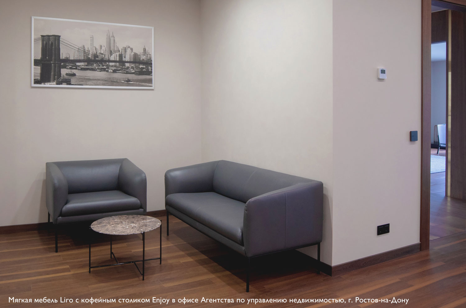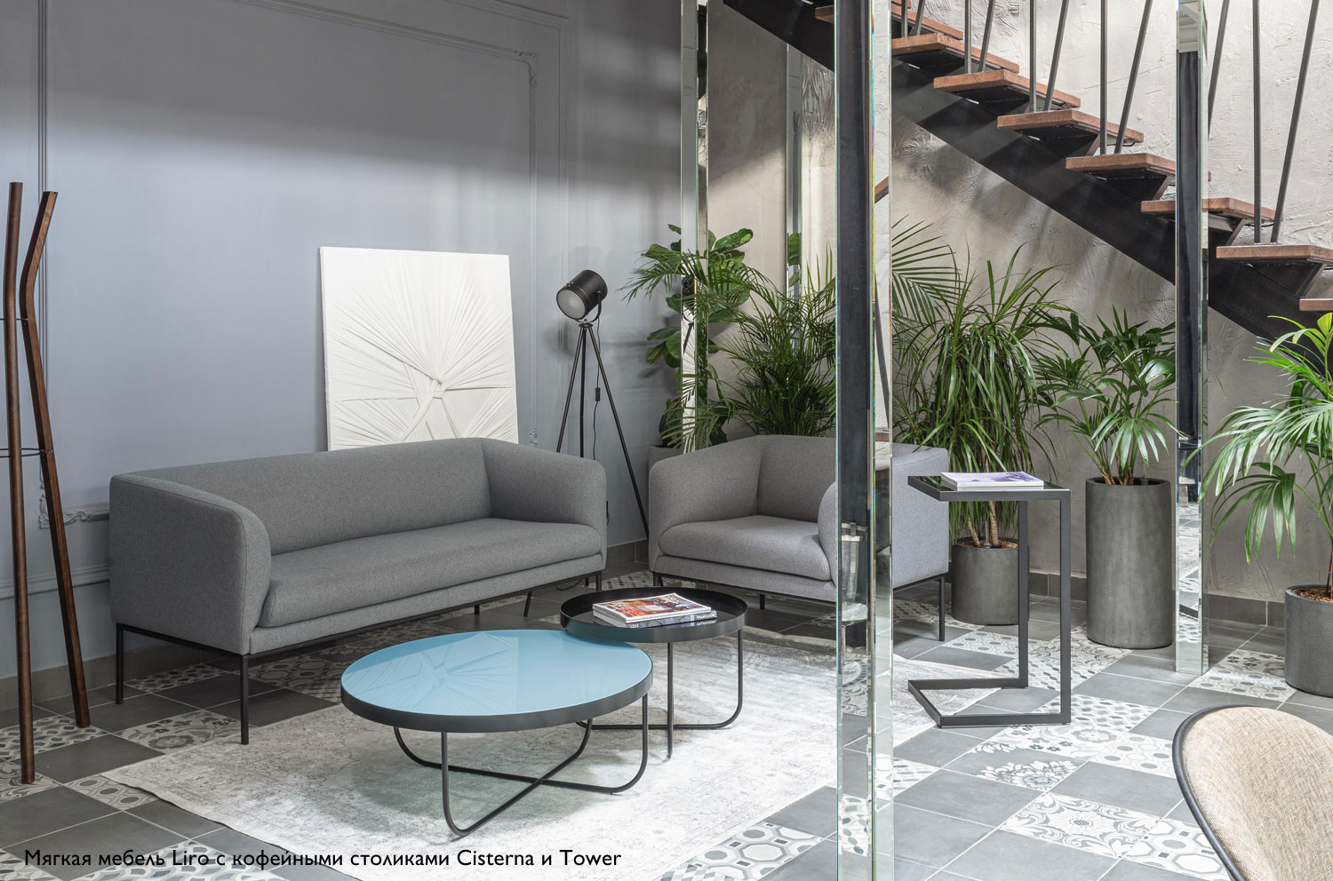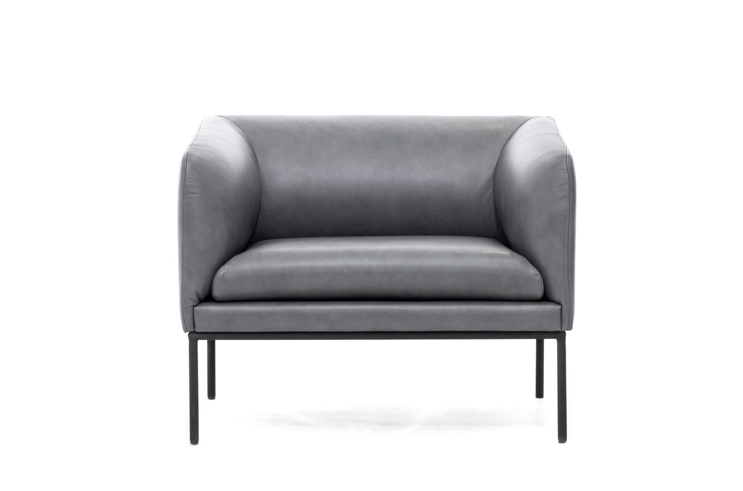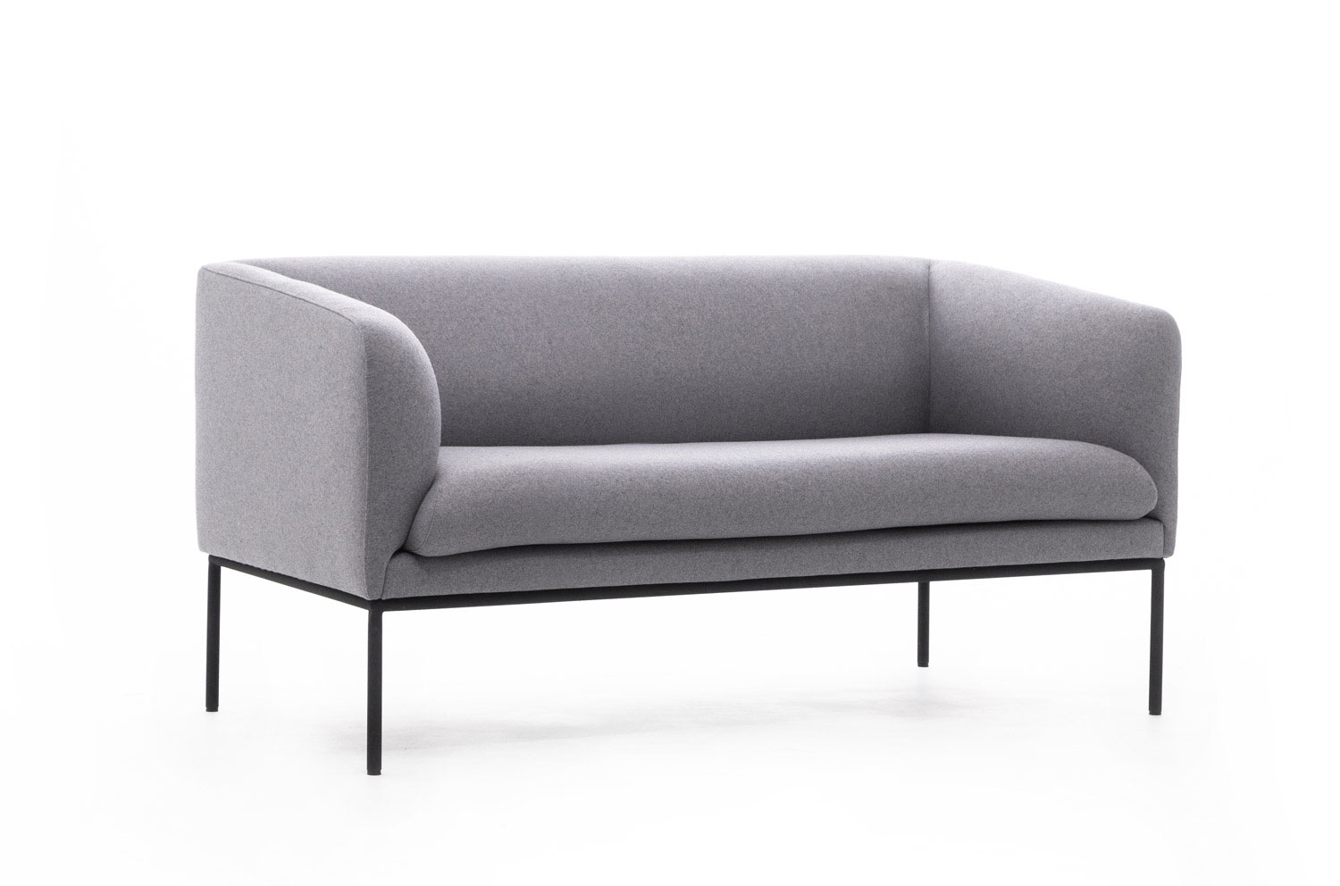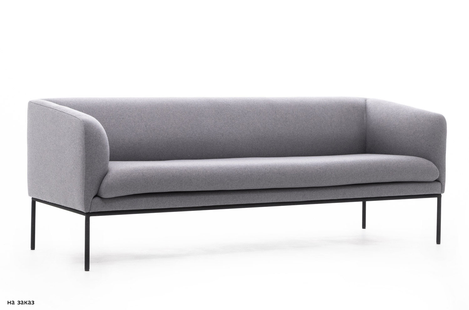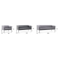 Коллекция "Liro" в складском ассортименте представлена двухместным диваном и креслом, выполненными в шерстяной ткани или коже серого цвета в сочетании с черными стальными опорами.
