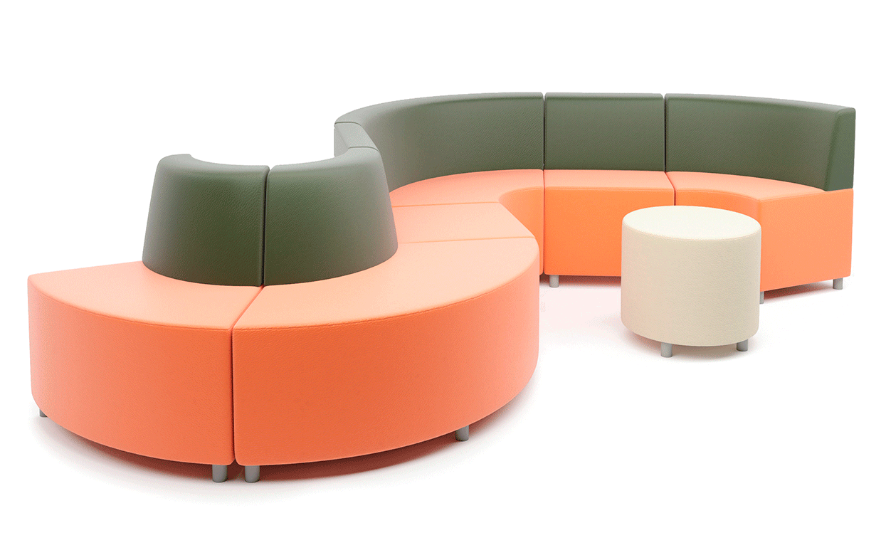 Серия “МОБИЛЕ” состоит из модулей и пуфов двух глубин, что позволяет создавать комфортную и функциональную обстановку в помещениях с ограниченным пространством и колоннами.