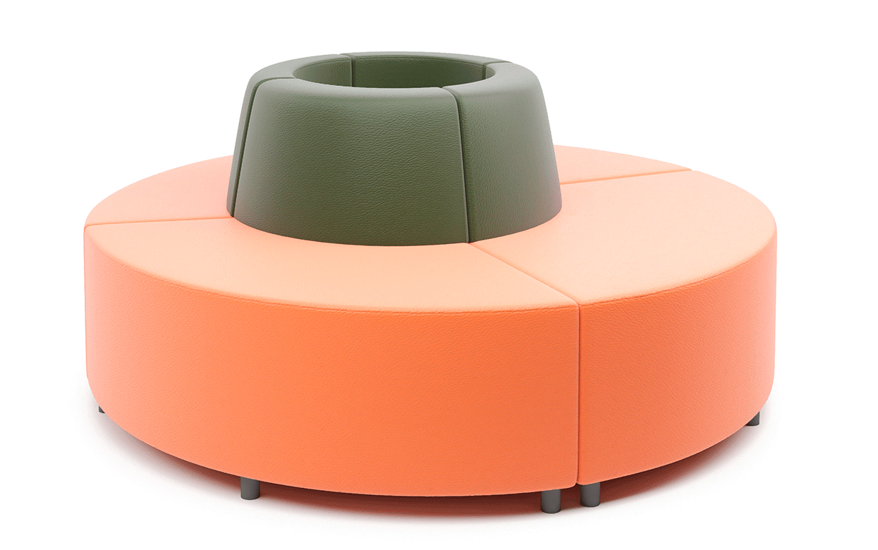 Входящие в состав элементы дают возможность компоновать различные волнообразные комбинации с разной глубиной посадочного места, круглые композиции со смещенным центром и обыгрывать пространства вокруг колонн диаметром до 500 мм.