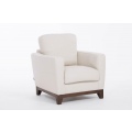 Опорная консоль из массива дерева в цвете орех гармонично сочетается с мягкой натуральной кожей бежевого цвета.